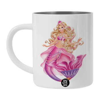 Barbie mermaid blue, BIG Mug Stainless steel double wall (450ml, White)