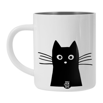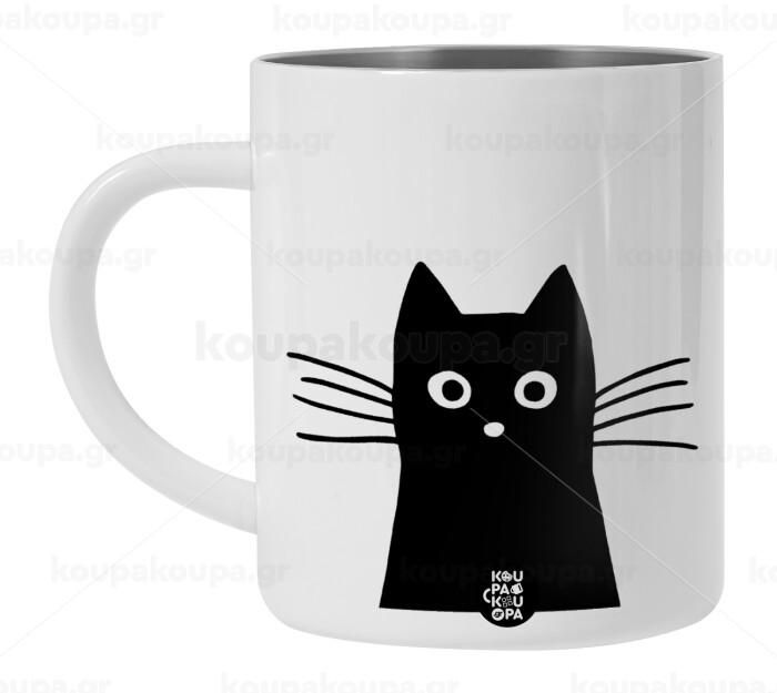 Black Cat, BIG Mug Stainless steel double wall (450ml, White)