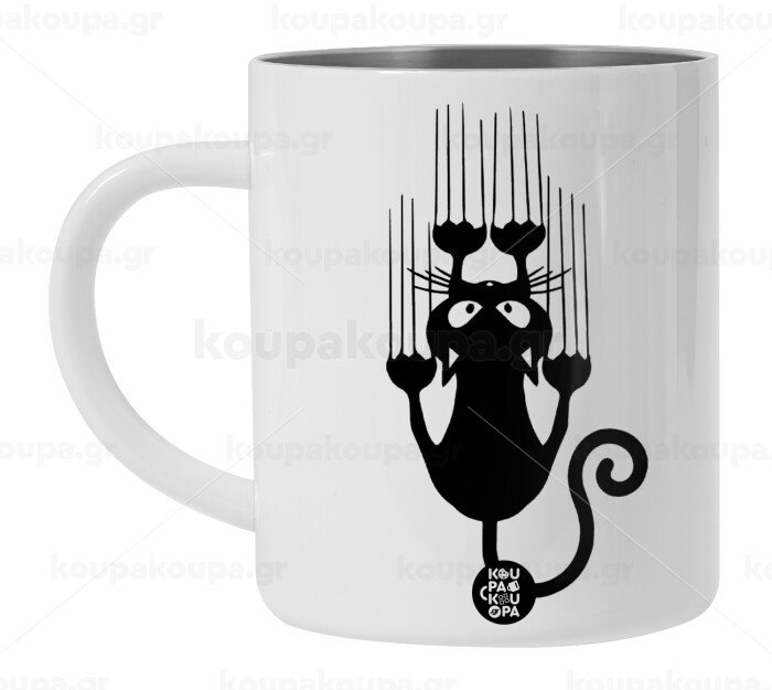 Cat scratching, BIG Mug Stainless steel double wall (450ml, White)