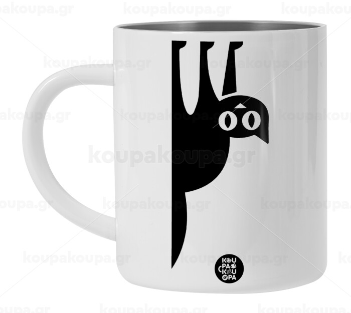 Cat upside down, BIG Mug Stainless steel double wall (450ml, White)