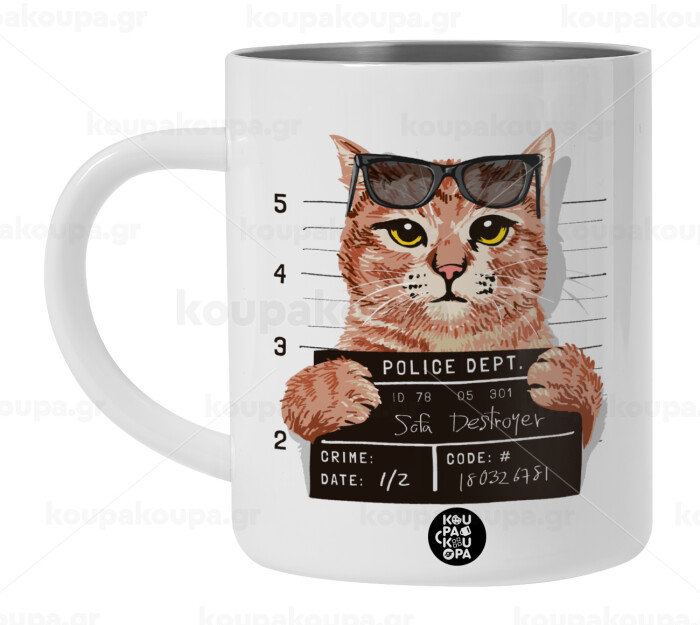 Cool cat, BIG Mug Stainless steel double wall (450ml, White)