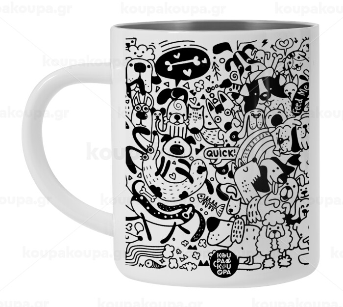 DOG pattern, BIG Mug Stainless steel double wall (450ml, White)