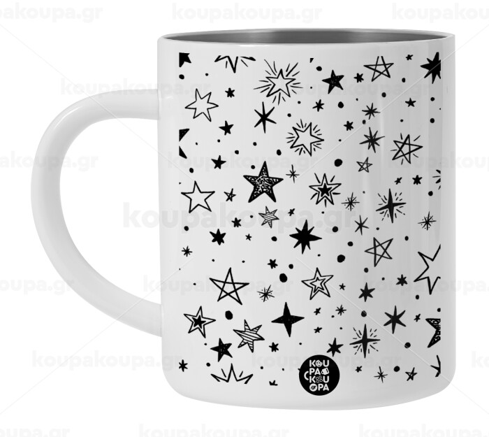 Doodle Stars, BIG Mug Stainless steel double wall (450ml, White)