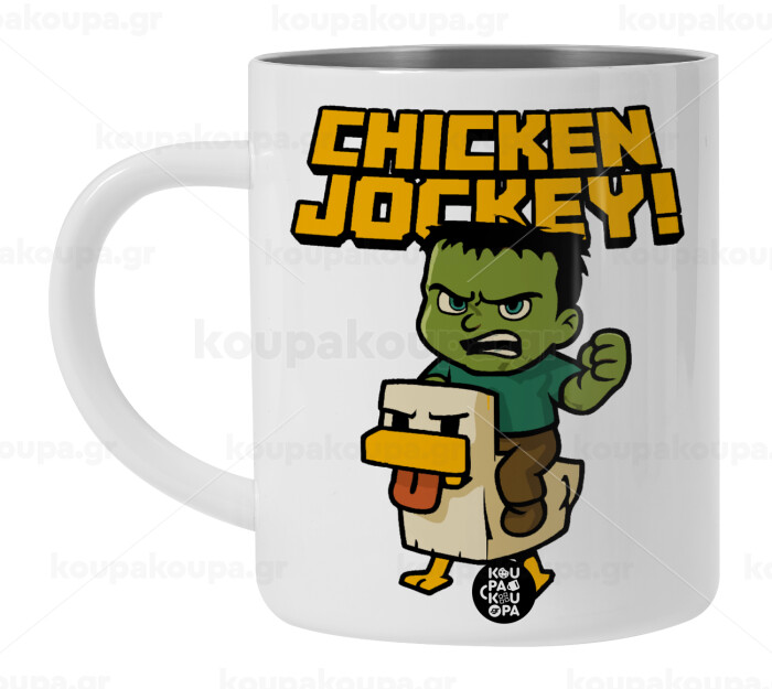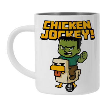 Chicken Jockey, BIG Mug Stainless steel double wall (450ml, White)
