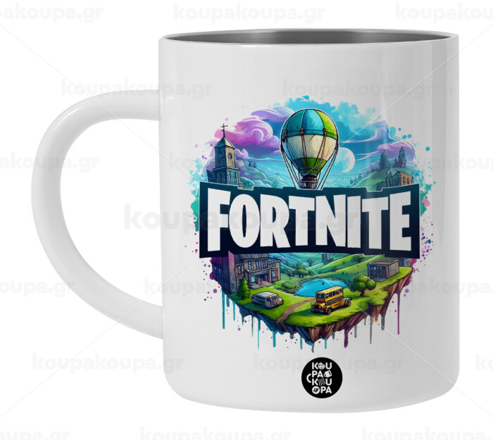 Fortnite land, BIG Mug Stainless steel double wall (450ml, White)