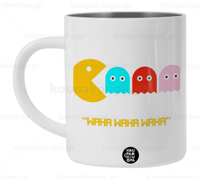 Pacman waka waka waka, BIG Mug Stainless steel double wall (450ml, White)