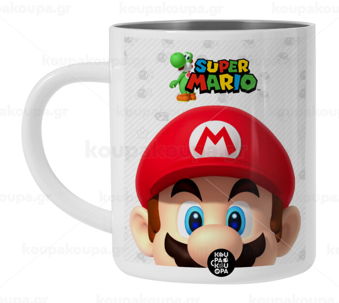 Super mario, BIG Mug Stainless steel double wall (450ml, White)