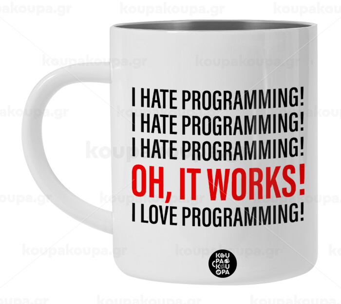 I hate programming!!!, BIG Mug Stainless steel double wall (450ml, White)