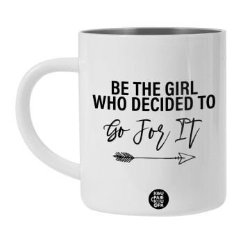 Be the girl who decided to, BIG Mug Stainless steel double wall (450ml, White)