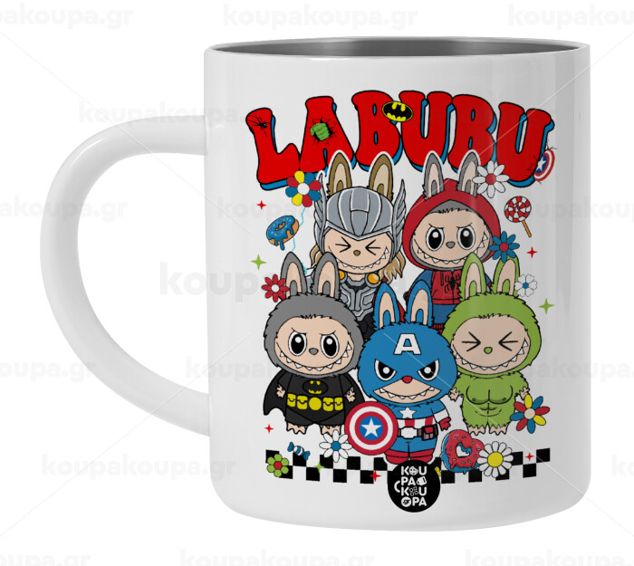 Labubu superheroes, BIG Mug Stainless steel double wall (450ml, White)