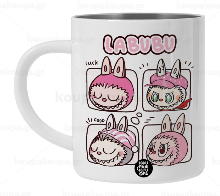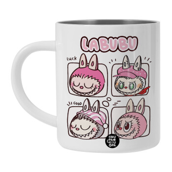 Labubu pink, BIG Mug Stainless steel double wall (450ml, White)