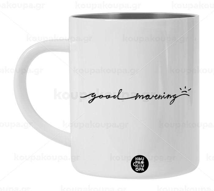 Good morning, BIG Mug Stainless steel double wall (450ml, White)