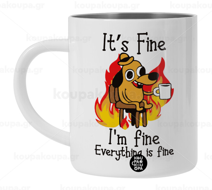 It's Fine I'm Fine Everything Is Fine, BIG Mug Stainless steel double wall (450ml, White)