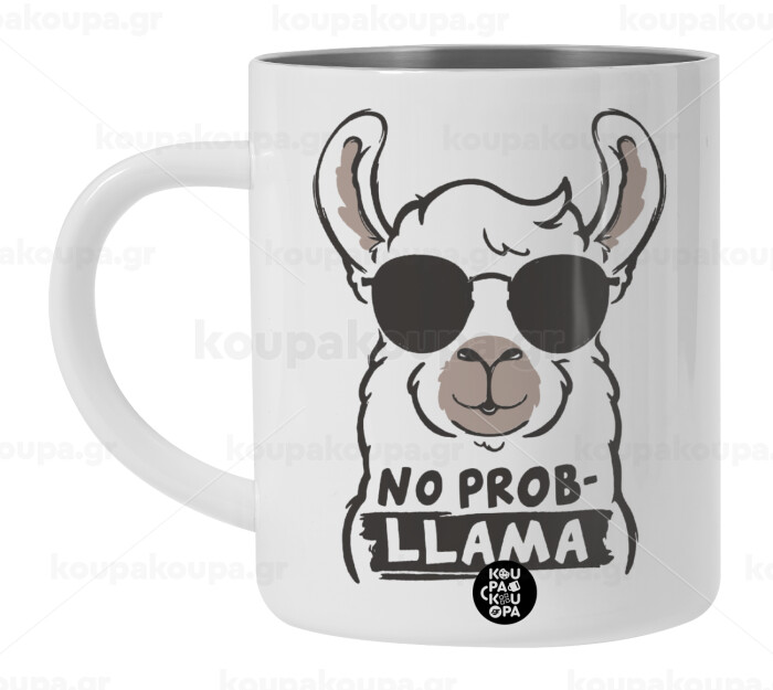 No Prob Llama, BIG Mug Stainless steel double wall (450ml, White)