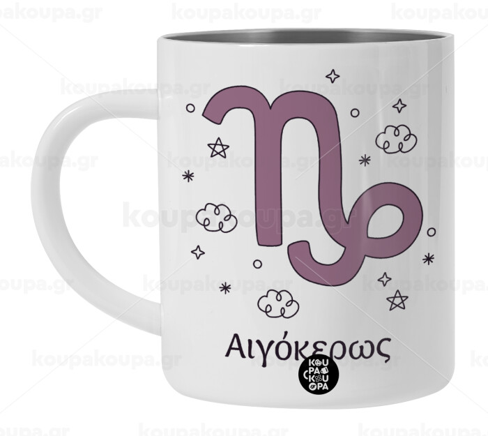 Ζώδια Αιγόκερως, BIG Mug Stainless steel double wall (450ml, White)