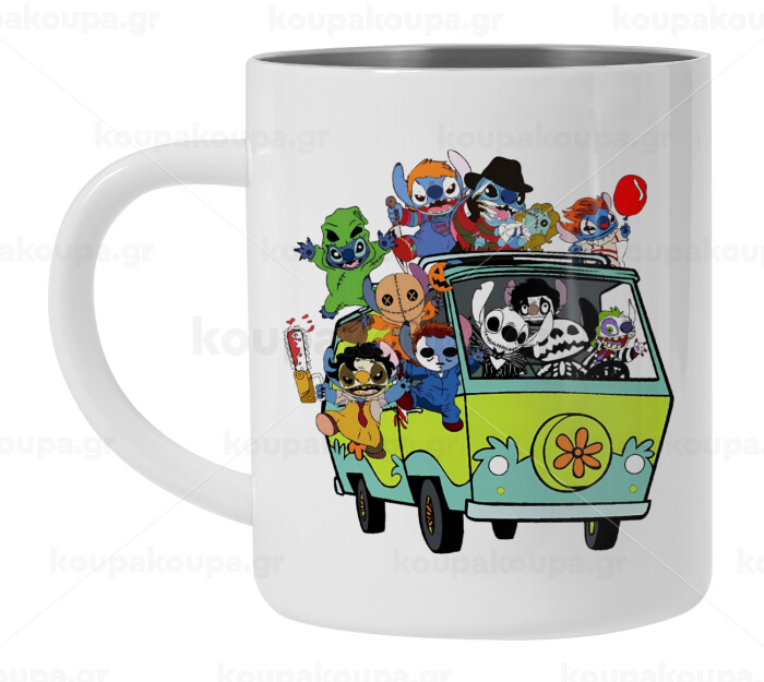 Stitch Halloween scooby car, Mug Stainless steel double wall 300ml