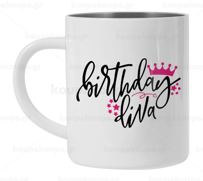 Birthday Diva queen, Mug Stainless steel double wall 300ml