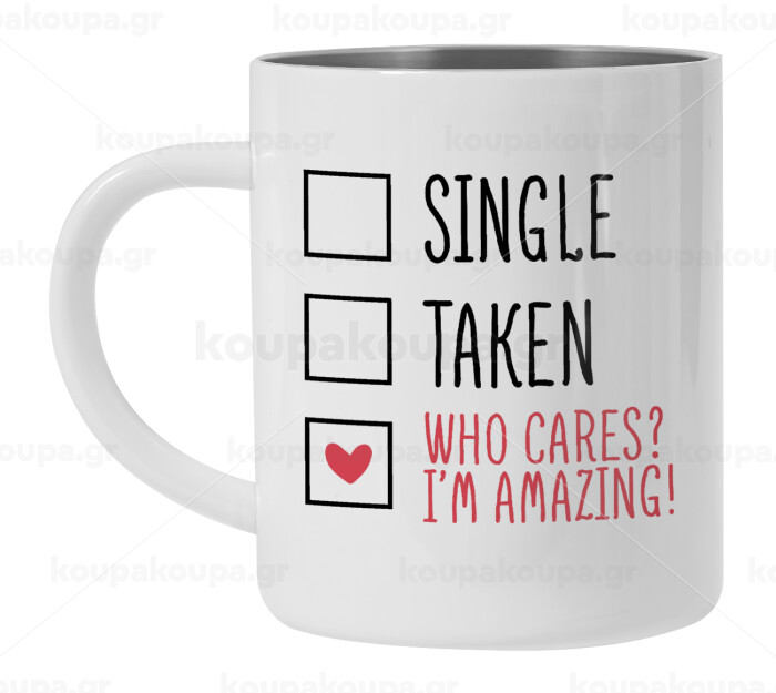 Single, Taken, Who cares i'm amazing, Mug Stainless steel double wall 300ml