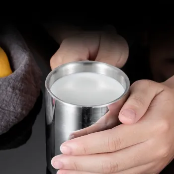 Stainless steel cup (300ml) with double wall of excellent quality. Suitable for hot and cold drinks. Hand wash recommended. The double wall keeps the temperature of the drink inside and allows you to embrace your drink.