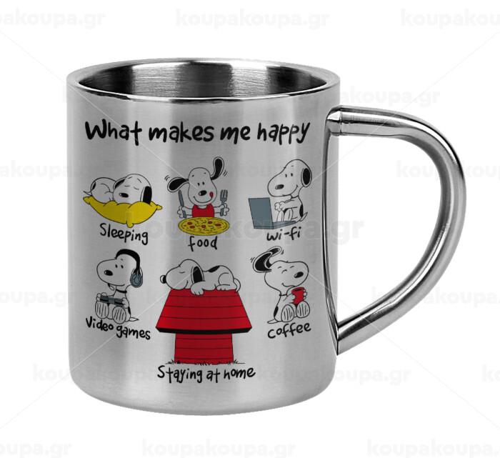 Snoopy what makes my happy, Mug Stainless steel double wall 300ml