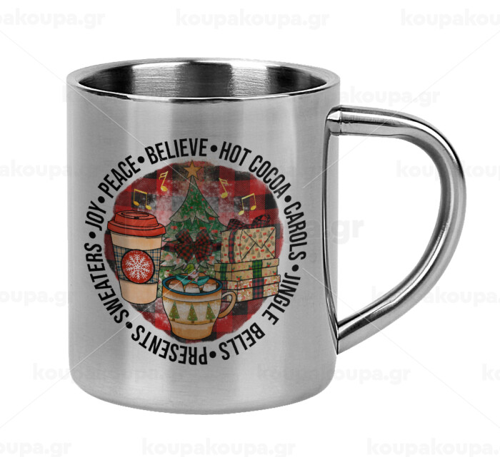 Joy, Peace, Believe, Hot Cocoa, Carols, Mug Stainless steel double wall 300ml