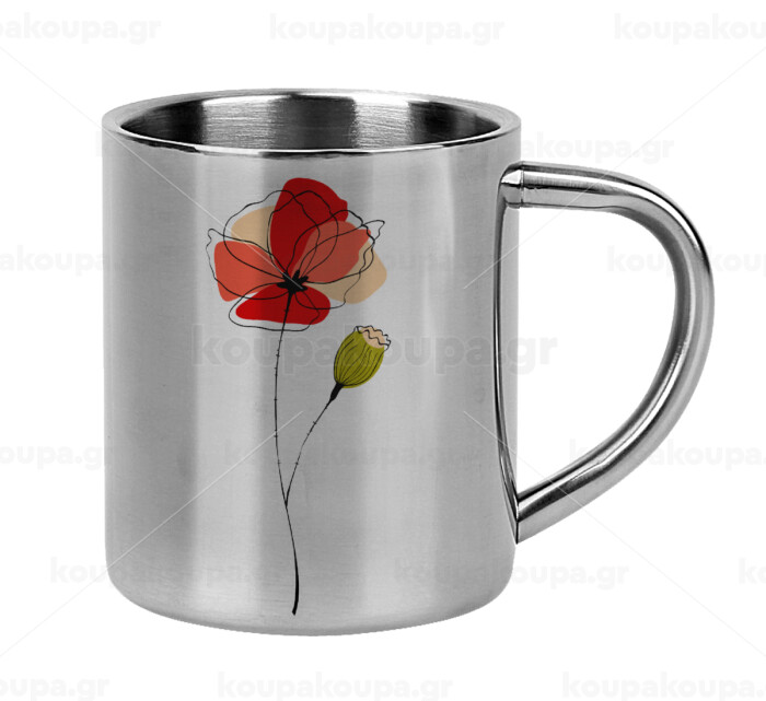 Red poppy flowers papaver, Mug Stainless steel double wall 300ml