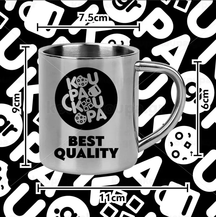 Stainless steel cup (300ml) with double wall of excellent quality. Suitable for hot and cold drinks. Hand wash recommended. The double wall keeps the temperature of the drink inside and allows you to embrace your drink.