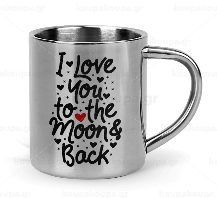 I love you to the moon and back with hearts, Mug Stainless steel double wall 300ml