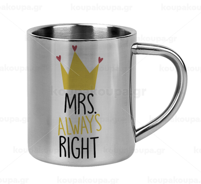 Mrs "Always" right, Mug Stainless steel double wall 300ml
