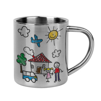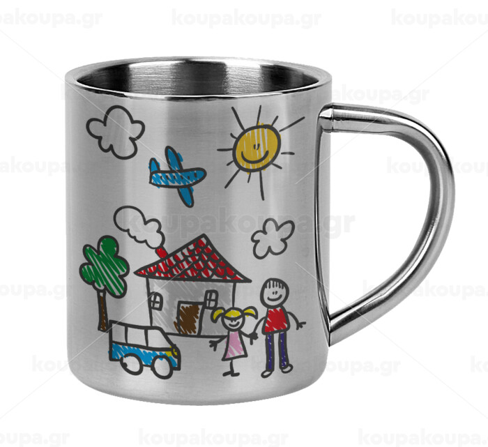 Stainless steel cup (300ml) with double wall of excellent quality. Suitable for hot and cold drinks. Hand wash recommended. The double wall keeps the temperature of the drink inside and allows you to embrace your drink.