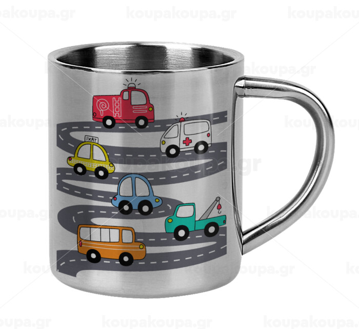 Hand drawn childish set with cars, Mug Stainless steel double wall 300ml