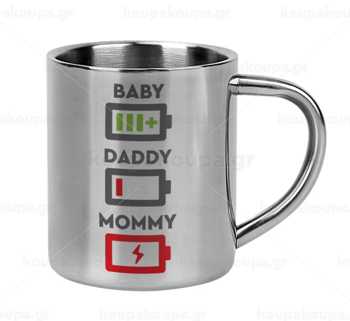 BABY, MOMMY, DADDY Low battery, Mug Stainless steel double wall 300ml