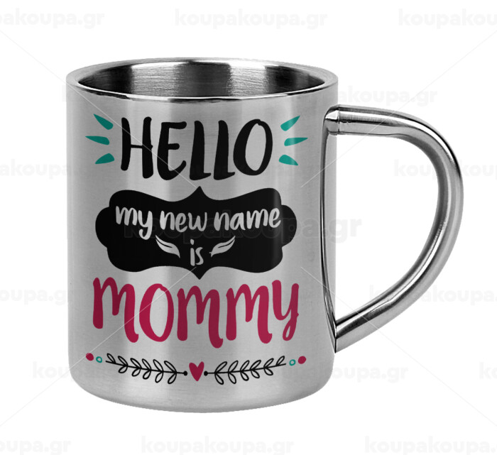 Hello, my new name is Mommy, Mug Stainless steel double wall 300ml
