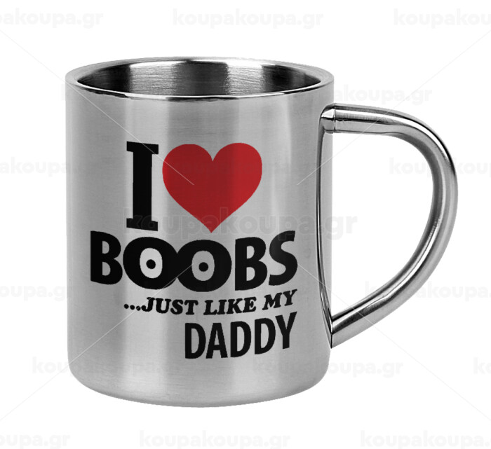 I Love boobs ...just like my daddy, Mug Stainless steel double wall 300ml