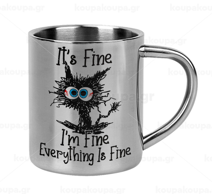 Cat, It's Fine I'm Fine Everything Is Fine, Mug Stainless steel double wall 300ml