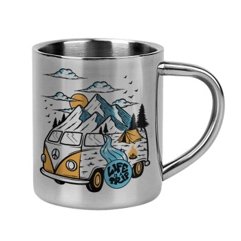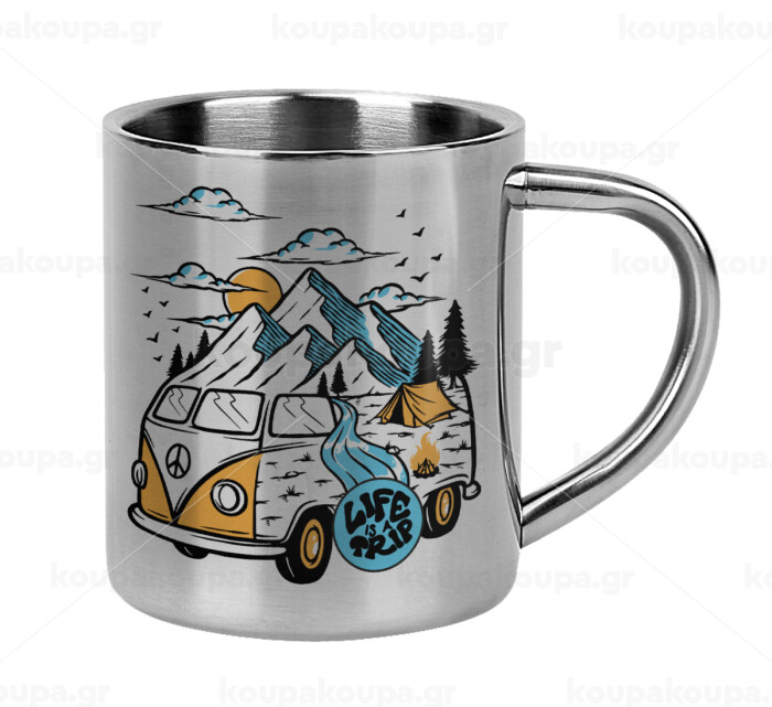 Stainless steel cup (300ml) with double wall of excellent quality. Suitable for hot and cold drinks. Hand wash recommended. The double wall keeps the temperature of the drink inside and allows you to embrace your drink.