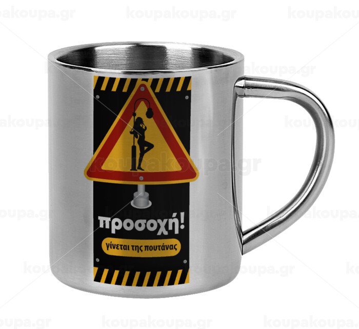 Προσοχή Γίνεται της πουτ.νας, Mug Stainless steel double wall 300ml