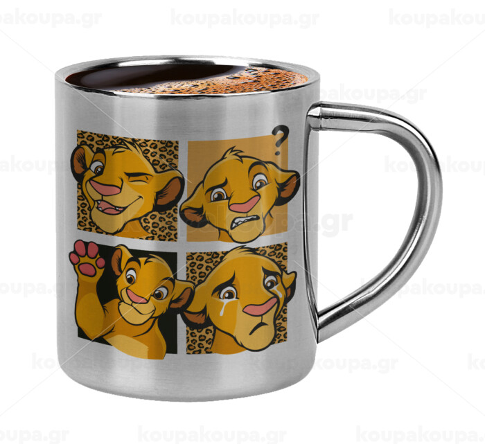 Simba, lion king, Double-wall metal cup for espresso (220ml)