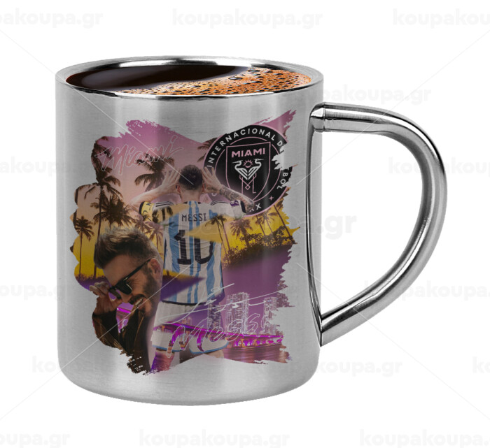 Lionel Messi Miami, Double-wall metal cup for espresso (220ml)