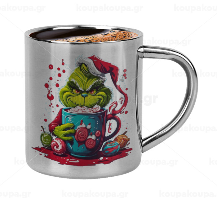 Giggling Grinchy Galore, Double-wall metal cup for espresso (220ml)