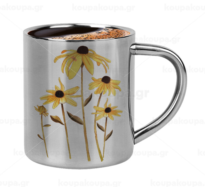 Daisies flower, Double-wall metal cup for espresso (220ml)
