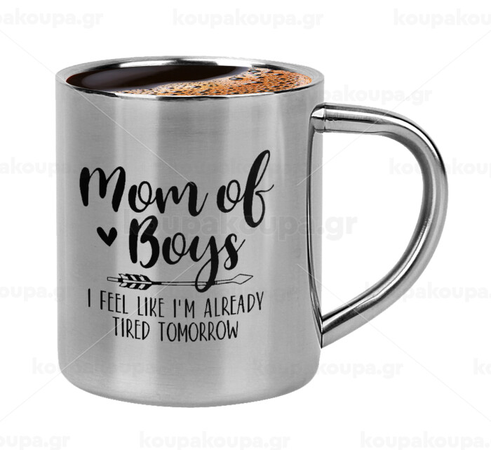 Mom of boys i feel like im already tired tomorrow, Double-wall metal cup for espresso (220ml)