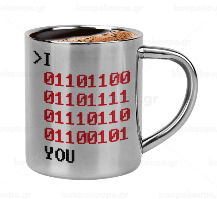 I .... YOU, binary secret MSG, Double-wall metal cup for espresso (220ml)