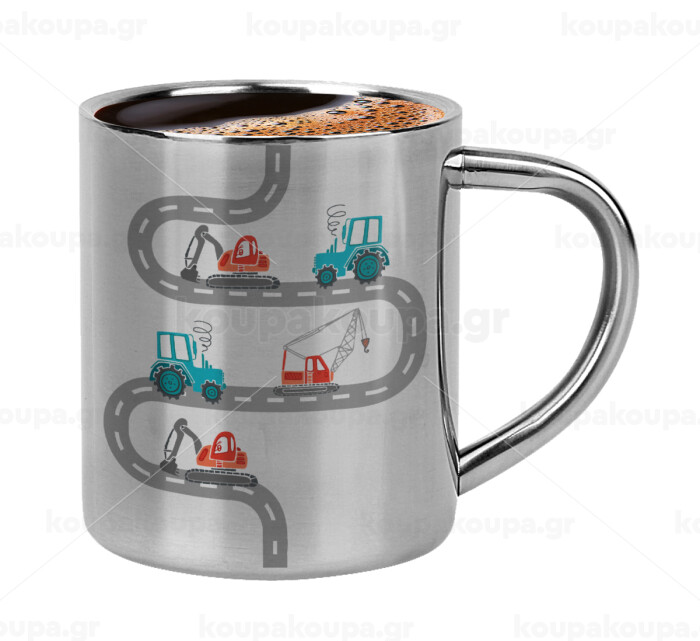 excavator along road, Double-wall metal cup for espresso (220ml)