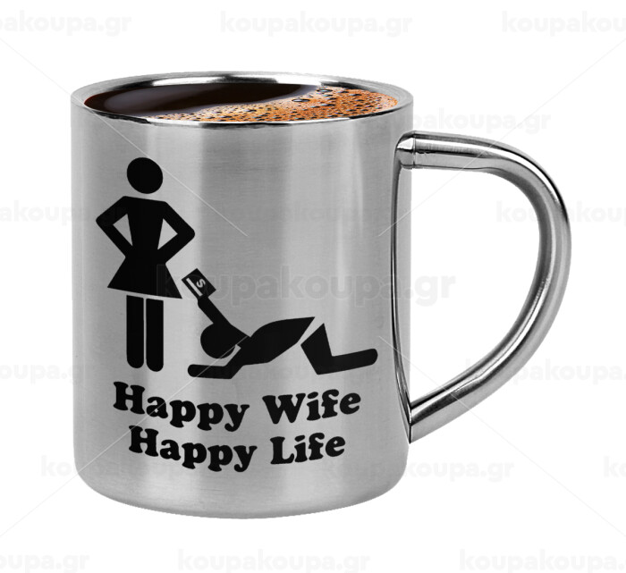 Happy Wife, Happy Life, Double-wall metal cup for espresso (220ml)