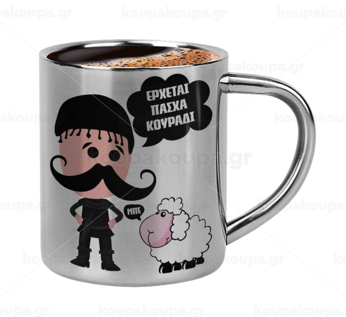 Κρητικός "Έρχεται Πάσχα κουράδι", Double-wall metal cup for espresso (220ml)