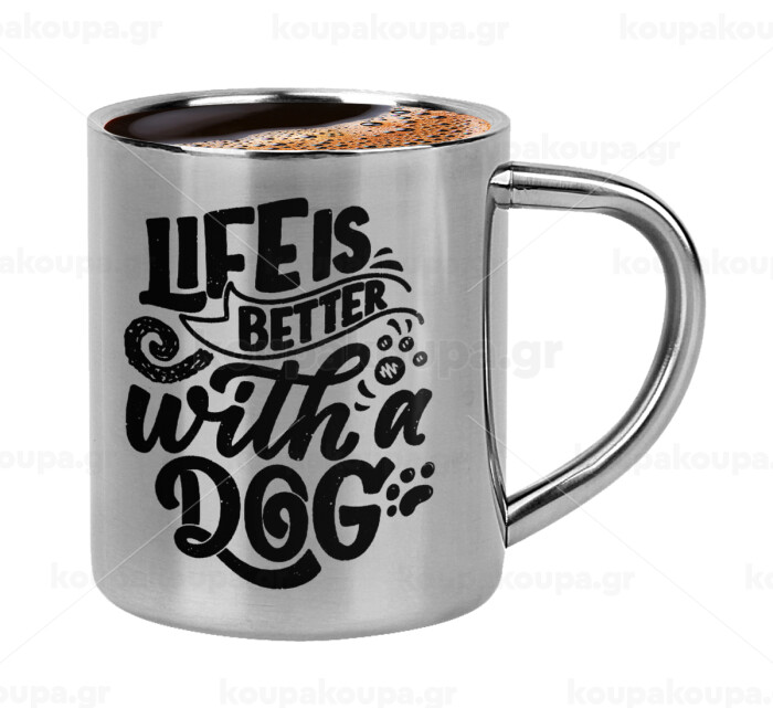 Life is better with a DOG, Double-wall metal cup for espresso (220ml)