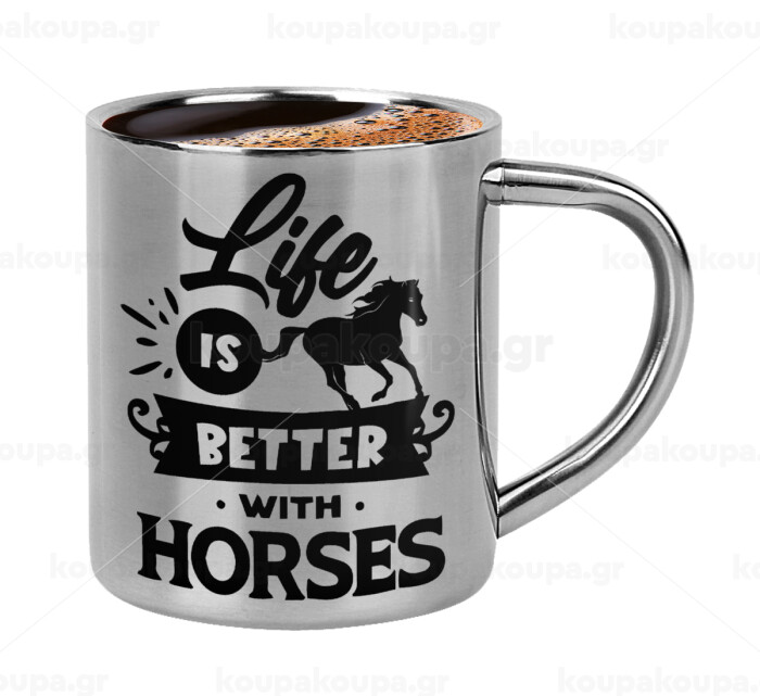 Life is Better with a Horses, Double-wall metal cup for espresso (220ml)