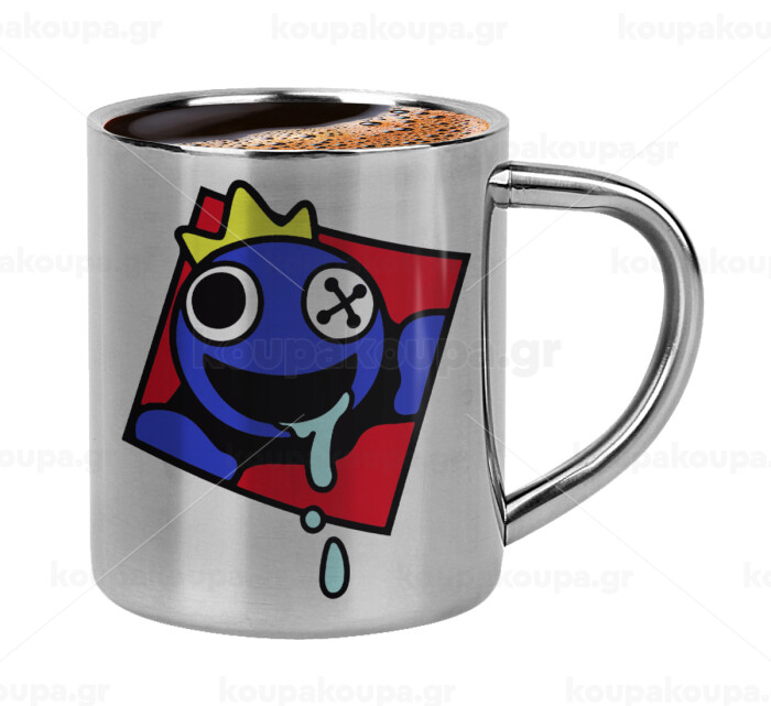 Blue, Rainbow friends, Double-wall metal cup for espresso (220ml)