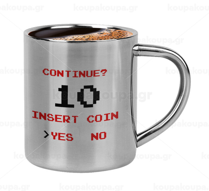 Continue? YES - NO, Double-wall metal cup for espresso (220ml)